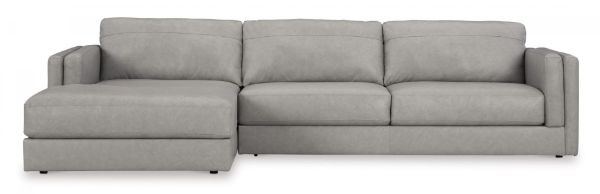 Keen on crisp, contemporary design? Adore the pleasure of leather? Look no further. This sectional with chaise satisfies on every level. Richly textured and decadently supple, the plush cushions are wrapped with expertly matched leather and faux leather upholstery in an on-trend neutral tone. Sleek double-padded arms and a low, clean-lined profile complete this spacious sectional's simply chic appeal. Includes 2 pieces: left-arm facing corner chaise and right-arm facing sofa "Left-arm" and "right-arm" describe the position of the arm when you face the piece Corner-blocked frame Attached cushions High-resiliency foam cushions wrapped in poly fiber Genuine leather covers inside areas such as the back, seat and arm cushions; skillfully matched faux leather covers the remaining areas Lightly waxed pullup look; lightly buffed and embossed with protective finish to prevent scratches Due to its natural origin, real leather can show individual characteristics such as healed scars, growth marks, grain variation and shade variation Natural variations make each hide unique and do not detract from the wearing qualities of leather Platform foundation system resists sagging 3x better than spring system after 20,000 testing cycles by providing more even support Smooth platform foundation maintains tight, wrinkle-free look without dips or sags that can occur over time with sinuous spring foundations Non-skid legs Estimated Assembly Time: 5 Minutes