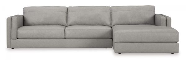 Keen on crisp, contemporary design? Adore the pleasure of leather? Look no further. This sectional with chaise satisfies on every level. Richly textured and decadently supple, the plush cushions are wrapped with expertly matched leather and faux leather upholstery in an on-trend neutral tone. Sleek double-padded arms and a low, clean-lined profile complete this spacious sectional's simply chic appeal. Includes 2 pieces: left-arm facing sofa and right-arm facing corner chaise "Left-arm" and "right-arm" describe the position of the arm when you face the piece Corner-blocked frame Attached cushions High-resiliency foam cushions wrapped in poly fiber Genuine leather covers inside areas such as the back, seat and arm cushions; skillfully matched faux leather covers the remaining areas Lightly waxed pullup look; lightly buffed and embossed with protective finish to prevent scratches Due to its natural origin, real leather can show individual characteristics such as healed scars, growth marks, grain variation and shade variation Natural variations make each hide unique and do not detract from the wearing qualities of leather Platform foundation system resists sagging 3x better than spring system after 20,000 testing cycles by providing more even support Smooth platform foundation maintains tight, wrinkle-free look without dips or sags that can occur over time with sinuous spring foundations Non-skid legs Estimated Assembly Time: 5 Minutes