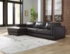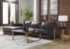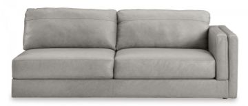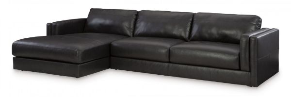 Keen on crisp, contemporary design? Adore the pleasure of leather? Look no further. This 2pc-sectional satisfies on every level. Richly textured and decadently supple, the cushion is wrapped with expertly matched leather and faux leather upholstery in an on-trend onyx tone. Sleek double-padded arms and a low, clean-lined profile complete the spacious loveseat's simply chic appeal.