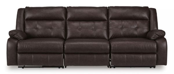 Elevate the everyday with this power reclining sectional sofa. With easy one-touch reclining and spacious seating, the piece offers relaxation and unparalleled coziness. Its faux leather upholstery is comfortably practical and beautifully enhanced with stylish contrast stitching. Factor in ample padded arms and a tufted lumbar area and you’ve got the perfect spot to wind down. Includes 3 pieces: left-arm facing power recliner, power armless recliner and right-arm facing power recliner "Left-arm" and "right-arm" describe the position of the arm when you face the piece One-touch power control with adjustable positions Zero wall design requires minimal space between wall and chair back Corner-blocked frame with metal reinforced seats Attached cushions High-quality foam cushions wrapped in poly fiber Faux leather upholstery Zero-gravity mechanism allows optimum reclining comfort with infinite reclining positions at the touch of a button Zero wall recliner design requires minimal space between wall and chair back Power cord included; UL Listed Estimated Assembly Time: 10 Minutes