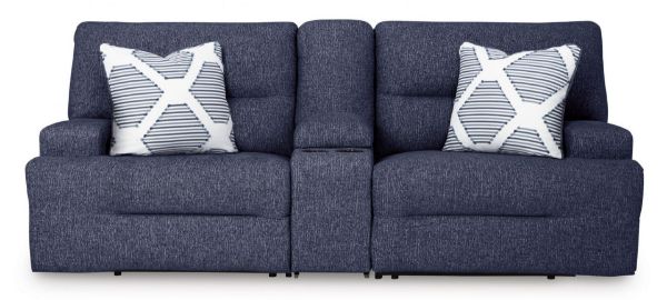 Enjoy the endless adaptability of this power reclining sectional with chaise. Whether you’re hosting guests, setting up for movie night or just need a refresh, the modular design allows you to rearrange the pieces as you please. One-touch controls effortlessly adjust the recliners and headrests to suit your needs. Time to tidy? Cleaning and upkeep are less of a hassle with durable Next-Gen Nuvella™ upholstery. Includes 3 modular pieces: left-arm facing power recliner, console with storage and right-arm facing power recliner "Left-arm" and "right-arm" describe the position of the arm when you face the piece Versatile modular pieces fit together in a variety of configurations One-touch power control with adjustable positions, Easy View™ adjustable headrest and zero-draw USB port; zero-draw technology only consumes power when the USB receptacle is in use Easy View™ adjustable headrest puts your head and neck in optimum position for reading or watching TV even if you're fully reclined Zero-gravity mechanism allows optimum reclining comfort with infinite reclining positions at the touch of a button Corner-blocked frame with metal reinforced seat; attached cushions; high-quality foam cushions wrapped in poly fiber Accent pillows included; pillows with soft polyfill Polyester upholstery Next-Gen Nuvella™ is a family-friendly fabric that is soft, easy to clean, stain-resistant and durable Clean fabric with mild soap and water, let air dry; for stubborn stains, use a solution of 4 oz. bleach to 28 oz. water Console with 2 cup holders and hidden storage Power cord included; UL Listed Estimated Assembly Time: 10 Minutes