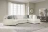 Make your space that much more livable with this sectional with chaise. Multicolored yarns give the buttery soft upholstery beautiful dimension. Track armrests, box cushions and low-profile legs lend a clean, contemporary aesthetic. Unwind in style with this timeless set, which makes a memorable impression again and again. Includes 3 pieces: left-arm facing cuddler, armless loveseat and right-arm facing corner chaise "Left-arm" and "right-arm" describe the position of the arm when you face the piece Corner-blocked frame Reversible back and seat cushions High-resiliency foam cushions wrapped in poly fiber Accent pillows included Pillows with soft polyfill Polyester upholstery Low-profile accent legs with faux wood finish Platform foundation system resists sagging 3x better than spring system after 20,000 testing cycles by providing more even support Smooth platform foundation maintains tight, wrinkle-free look without dips or sags that can occur over time with sinuous spring foundations Estimated Assembly Time: 10 Minutes