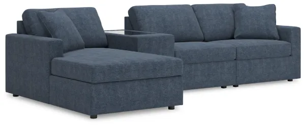 Includes 4 modular pieces: left-arm facing corner chaise, armless chair, console with storage and right-arm facing corner chair. "Left-arm" and "right-arm" describe the position of the arm when you face the piece. Modular pieces can float anywhere; sides are finished (with no connectors). Corner-blocked frame. Loose reversible seat and back cushions; high-quality foam cushions wrapped in poly fiber. Throw pillows included; soft polyfill. Polyester upholstery. Next-Gen Nuvella™ is a family-friendly fabric that is soft, easy to clean, stain-resistant and durable; easy-to-remove zippered covers for machine washing. Clean fabric with mild soap and water, let air dry; for stubborn stains, use a solution of 4 oz. bleach to 28 oz. water. Non-skid legs. Console with removable plexiglass top; pull-out drawer for storage. Platform foundation system resists sagging 3x better than spring system after 20,000 testing cycles by providing more even support. Smooth platform foundation maintains tight, wrinkle-free look without dips or sags that can occur over time with sinuous spring foundations. Estimated Assembly Time: 15 Minutes.