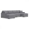 This sectional with chaise evolves as your family’s needs do. Its adaptable modular design makes staging and rearranging a breeze. Living room messes leaving you stressed? Cleaning is that much easier with stain-resistant and durable Next-Gen Nuvella™ fabric. From easygoing mornings to family movie nights, this sectional brings fashionable function to everyday lounging. Includes 4 modular pieces: left-arm facing corner chaise, 2 armless chairs and right-arm facing corner chaise "Left-arm" and "right-arm" describe the position of the arm when you face the piece Modular pieces can float anywhere; sides are finished (with no connectors) Corner-blocked frame Reversible back and seat cushions; high-resiliency foam cushions wrapped in poly fiber Throw pillows included; pillows with soft polyfill Polyester upholstery Next-Gen Nuvella™ is a family-friendly fabric that is soft, easy to clean, stain-resistant and durable Easy-to-remove zippered covers for machine washing Clean fabric with mild soap and water, let air dry; for stubborn stains, use a solution of 4 oz. bleach to 28 oz. water Low-profile accent legs with faux wood finish Platform foundation system resists sagging 3x better than spring system after 20,000 testing cycles by providing more even support Smooth platform foundation maintains tight, wrinkle-free look without dips or sags that can occur over time with sinuous spring foundations Estimated Assembly Time: 10 Minutes