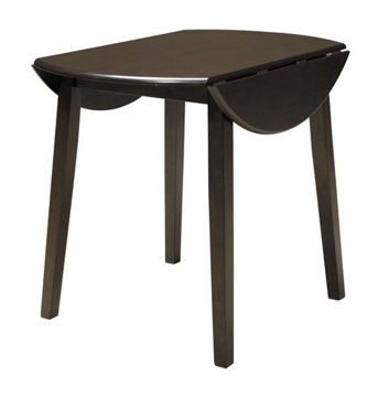 Made with select birch veneer and hardwood solids in a transitional dark brown finish with gray undertones. Compact table seats four and includes drop leaves for multi-function.