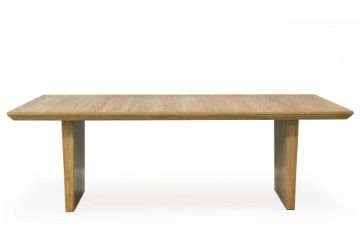 If you appreciate minimalistic style, this dining room is the ideal option. Its modern silhouette boasts a thick beveled profile top on a double plinth base. Need extra space? A removable leaf adds more room for family and friends. With a combination of relaxed contemporary design and fashionable appeal, this piece adds a touch of casual chic to your decor.