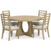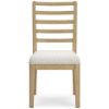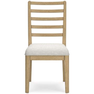 This dining table's classic yet modern good looks are hard to deny. Crafted with a contemporary-inspired design, it's highlighted by an effortlessly eye-catching geometric base. The Rencott dining side chair's classic yet contemporary good looks are hard to deny. Crafted with a modern ladderback design and a softly cushioned seat, it adds a comfortably cozy dimension to everyday seating or when guests gather. With a light oak finish and wire-brushed wood grain texture, this table lends an organic appeal to your delicious dining space ... or wherever family and guests gather.