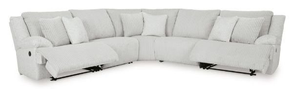 Experience unparalleled comfort with this reclining sectional. It’s a stylish and invitingly soft look—made all the more appealing by cozy corduroy cushions that feel great and add a touch of texture. The neutral hue effortlessly blends into your decor, making it a gorgeous addition to your home. So sit back and unwind in this spacious set, perfect for gatherings with friends and family. Includes 5 pieces: left-arm facing recliner, armless recliner, armless chair, wedge and right-arm facing recliner "Left-arm" and "right-arm" describe the position of the arm when you face the piece Recliners with pull tab reclining motion Corner-blocked frame with metal reinforced seat Attached cushions High-quality foam cushions wrapped in poly fiber Accent pillows included Pillows with soft polyfill Polyester upholstery Center console with 2 cup holders and hidden storage Estimated Assembly Time: 20 Minutes