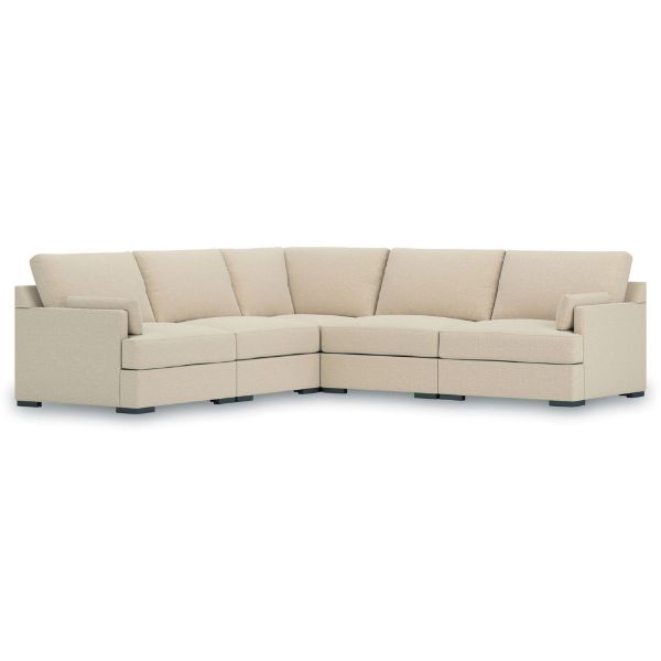 Versatility, meet comfort. This sectional brings practicality to the everyday with Next-Gen Nuvella™, an easy-to-clean fabric ideal for busy households. Getting bored of your living room layout? Thanks to the modular design, you can freshen up your space with new sectional configurations, or simply let the pieces stand alone. And with super-soft feather blend cushions, your home’s central hub has never been so cozy. Includes 5 pieces: left-arm facing corner chair, 2 armless chairs, wedge and right-arm facing corner chair "Left-arm" and "right-arm" describe the position of the arm when you face the piece Modular pieces can float anywhere; sides are finished (with no connectors) Corner-blocked frame Reversible back and seat cushions; high-density foam cushion wrapped in feather-fiber blend jacket Bolster pillows included; pillows with soft polyfill Polyester upholstery Next-Gen Nuvella™ is a family-friendly fabric that is soft, easy to clean, stain-resistant and durable Easy-to-remove zippered covers for machine washing Clean fabric with mild soap and water, let air dry; for stubborn stains, use a solution of 4 oz. bleach to 28 oz. water Low-profile accent legs with faux wood finish Platform foundation system resists sagging 3x better than spring system after 20,000 testing cycles by providing more even support Smooth platform foundation maintains tight, wrinkle-free look without dips or sags that can occur over time with sinuous spring foundations Estimated Assembly Time: 15 Minutes