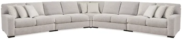 Includes 5 pieces: left-arm facing loveseat, 2 armless loveseats, wedge and right-arm facing loveseat. "Left-arm" and "right-arm" describe the position of the arm when you face the piece. Corner-blocked frame. Reversible seat and back cushions. High-resiliency foam cushions wrapped in poly fiber. Accent pillows included; pillows with soft polyfill. Polyester upholsteryNext-Gen Nuvella™ is a family-friendly fabric that is soft, easy to clean, stain-resistant and durable. Easy-to-remove zippered covers for machine washing. Clean fabric with mild soap and water, let air dry; for stubborn stains, use a solution of 4 oz. bleach to 28 oz. water. Exposed feet with faux wood finish . Platform foundation system resists sagging 3x better than spring system after 20,000 testing cycles by providing more even support. Smooth platform foundation maintains tight, wrinkle-free look without dips or sags that can occur over time with sinuous spring foundations. Estimated Assembly Time: 15 Minutes.