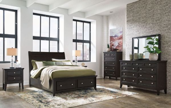 Whether you never want to leave your bed or can't wait to get back into it, make your dreaming time stylish with this queen sleigh storage bed. Its traditional profile is made modern with a rich dark brown finish. Let the blend of sophistication and easy style transform your dreams into reality.