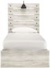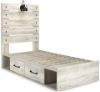 Wispy white finish over replicated Oak grain with authentic touch. Large scaled dark colored handles. Cases feature a framed front and pilasters. All panel headboards (53,57,58,87) feature decorative matte black sconce lights. Side roller glides for smooth operating drawers. All panel headboards (53,57,58,87) can attach to a bolt-on metal bed frame B100-31 or B100-66 respectively. Drawers lined with a faux linen laminate for a clean, finished look. Slim profile dual USB chargers located on the back of the night stand top and the side of the headboards. All side storage options (50,150,60,160) requires the use of the B100-11, B100-12, B100-13 or the B100-14 roll slats. All under bed storage units (50,150,60,160) accommodates to 11"W x 11"D x 11"H cube storage bins. All beds have a panel footboard (52,84,54,56) and storage footboard option (52S,84S,54S, 56S). Queen (157) and king (158) upholstered panel headboards feature double upholstered pads with small nail tack details. All panel headboards (53,57,58,87,157,158) can attach to a bolt-on metal bed frame B100-31 or B100-66 respectively. Queen (157) and king (158) gray upholstered panel headboards are compatible with existing underbed storage options and footboards. Safety is a top priority, clothing storage units are designed to meet the most current standard for stability, ASTM F 2057 (ASTM International). Drawers extend out to accommodate maximum access to drawer interior while maintaining safety.