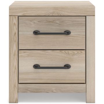 When merged in just the right way, rustic and industrial styles can make one happy marriage. Case in point: this king panel storage bedroom. It offers a refined take on barn board beauty, with subtle replicated wood grain showcasing a natural finish for a sense of authenticity. Love to read in bed? You’re sure to find that the headboard's retro-chic light sconces and integrated USB charging are such bright ideas. Underneath the bed are smooth-gliding drawers, along with open cubbies.