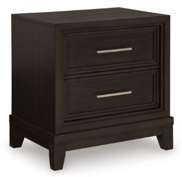 This nightstand combines modern and art deco styles for both traditional and contemporary arrangements. With elegant stepped moulded framing and two spacious drawers, it adds dimension to your sanctuary while keeping your belongings organized and clutter-free. Indulge in a fresh look that feels right at home.