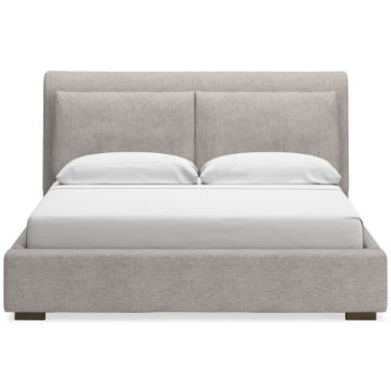 Strike the perfect balance of refined and relaxed with this king upholstered panel bed. The woven taupe gray upholstery brings a soft-yet-stylish look to your space. A seemingly floating silhouette elevates the piece's modern flair. Includes king upholstered panel headboard and footboard with rails. Made with wood, oak veneer and engineered wood. Polyester upholstery. Floating platform look. Foundation/box spring required, sold separately. Mattress available, sold separately. Assembly required.