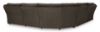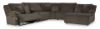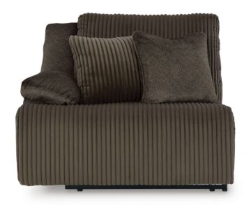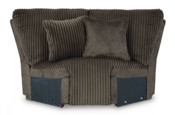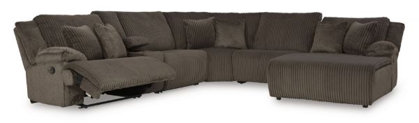 Experience unparalleled comfort with this reclining sectional with chaise. It’s a stylish and invitingly soft look—made all the more appealing by cozy corduroy cushions that feel great and add a touch of texture. The rich chocolate brown upholstery effortlessly blends into your decor, making it a gorgeous addition to your home. So sit back and unwind in this spacious set, perfect for gatherings with friends and family. Includes 6 pieces: left-arm facing recliner, armless recliner, armless chair, console with storage, wedge and right-arm facing press-back chaise "Left-arm" and "right-arm" describe the position of the arm when you face the piece Chaise with press-back reclining motion Recliners with pull tab reclining motion Corner-blocked frame with metal reinforced seat Attached cushions High-quality foam cushions wrapped in poly fiber Accent pillows included Pillows with soft polyfill Polyester upholstery Center console with 2 cup holders and hidden storage Estimated Assembly Time: 25 Minutes