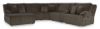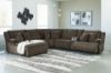 Experience unparalleled comfort with this reclining sectional with chaise. It’s a stylish and invitingly soft look—made all the more appealing by cozy corduroy cushions that feel great and add a touch of texture. The rich chocolate brown upholstery effortlessly blends into your decor, making it a gorgeous addition to your home. So sit back and unwind in this spacious set, perfect for gatherings with friends and family. Includes 6 pieces: left-arm facing press back chaise, armless recliner, armless chair, console with storage, wedge and right-arm facing recliner "Left-arm" and "right-arm" describe the position of the arm when you face the piece Chaise with press-back reclining motion Recliners with pull tab reclining motion Corner-blocked frame with metal reinforced seat Attached cushions High-quality foam cushions wrapped in poly fiber Accent pillows included Pillows with soft polyfill Polyester upholstery Center console with 2 cup holders and hidden storage Estimated Assembly Time: 25 Minutes