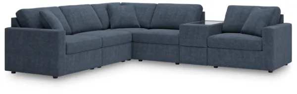 Includes 6 modular pieces: left-arm facing corner chair, 2 armless chairs, console with storage, wedge and right-arm facing corner chair. "Left-arm" and "right-arm" describe the position of the arm when you face the piece. Modular pieces can float anywhere; sides are finished (with no connectors). Corner-blocked frame. Loose reversible seat and back cushions; high-quality foam cushions wrapped in poly fiber. Throw pillows included; soft polyfill. Polyester upholstery. Next-Gen Nuvella™ is a family-friendly fabric that is soft, easy to clean, stain-resistant and durable; easy-to-remove zippered covers for machine washing. Clean fabric with mild soap and water, let air dry; for stubborn stains, use a solution of 4 oz. bleach to 28 oz. water. Non-skid legs. Console with removable plexiglass top; pull-out drawer for storage. Platform foundation system resists sagging 3x better than spring system after 20,000 testing cycles by providing more even support. Smooth platform foundation maintains tight, wrinkle-free look without dips or sags that can occur over time with sinuous spring foundations. Estimated Assembly Time: 20 Minutes.