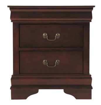 Made with select veneers and hardwood solids. Warm dark brown finish. Antique bronze color hardware.