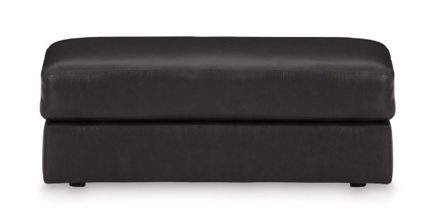 Keen on crisp, contemporary design? Adore the pleasure of leather? Look no further. This ottoman satisfies on every level. Richly textured and decadently supple, the cushion is wrapped with expertly matched leather and faux leather upholstery in an on-trend onyx tone. The ottoman's clean-lined profile completes its simply chic appeal. Corner-blocked frame Firmly cushioned High-quality foam cushion wrapped in poly fiber 100% top grain leather covers the cushion top; skillfully matched faux leather covers the remaining areas Lightly waxed pullup look; lightly buffed and embossed with protective finish to prevent scratches Due to its natural origin, real leather can show individual characteristics such as healed scars, growth marks, grain variation and shade variation Natural variations make each hide unique and do not detract from the wearing qualities of leather Non-skid legs