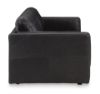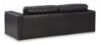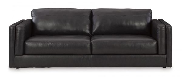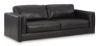 Keen on crisp, contemporary design? Adore the pleasure of leather? Look no further. This sofa satisfies on every level. Richly textured and decadently supple, the plush cushions are wrapped with expertly matched leather and faux leather upholstery in an on-trend onyx tone. Sleek double-padded arms and a low, clean-lined profile complete the spacious sofa's simply chic appeal. Corner-blocked frame Attached cushions High-resiliency foam cushions wrapped in poly fiber Genuine leather covers inside areas such as the back, seat and arm cushions; skillfully matched faux leather covers the remaining areas Lightly waxed pullup look; lightly buffed and embossed with protective finish to prevent scratches Due to its natural origin, real leather can show individual characteristics such as healed scars, growth marks, grain variation and shade variation Natural variations make each hide unique and do not detract from the wearing qualities of leather Platform foundation system resists sagging 3x better than spring system after 20,000 testing cycles by providing more even support Smooth platform foundation maintains tight, wrinkle-free look without dips or sags that can occur over time with sinuous spring foundations Non-skid legs