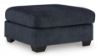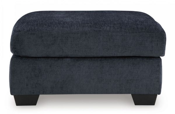 Looking to make a bold statement with color? Liven up your living room with this oversized ottoman. Its trend-right navy blue upholstery adds a playful pop of color to your decor. Pairing posh style with everyday comfort, this piece is a welcome addition to contemporary spaces. Corner-blocked frame Firmly cushioned High-quality foam cushion wrapped in poly fiber Polyester upholstery Exposed feet with faux wood finish