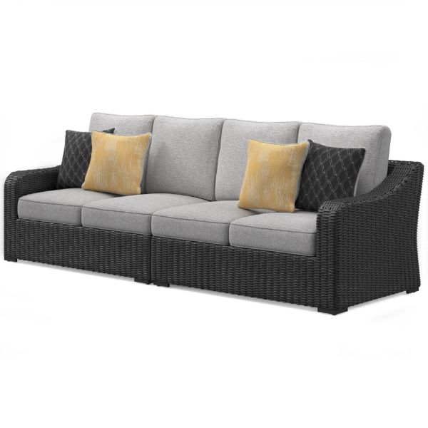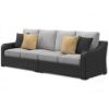 Sporting an easy-on-the-eyes elegance, this loveseat elevates the art of alfresco living. Beautiful and durable enough for indoor and outdoor use, the high-style/low-maintenance seating entices with plush, removable cushions wrapped in Nuvella® fabric that’s a breeze to keep clean. Includes loveseat with cushion. All-weather resin wicker handwoven over rust-free aluminum frame with durable powder coated finish. Solution-dyed high-performance fabric. Nuvella is an outdoor fabric that can be cleaned and offers UV resistance. Clean fabric with mild soap and water, let air dry; for stubborn stains, use a solution of 4 oz. bleach to 28 oz. water. Stainless steel hardware. 4 throw pillows included. Designed to withstand the harsh elements of the outdoors. Assembly required. Estimated Assembly Time: 15 Minutes.