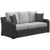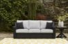 Sporting an easy-on-the-eyes elegance, this sofa elevates the art of alfresco living. Beautiful and durable enough for indoor and outdoor use, this high-style/low-maintenance sofa entices with plush, removable cushions wrapped in Nuvella® fabric that’s a breeze to keep clean. All-weather resin wicker handwoven over rust-free aluminum frame with durable powder coated finish. Solution-dyed high-performance fabric. Nuvella is an outdoor fabric that can be cleaned and offers UV resistance. Stainless steel hardware. Accent pillows included. Designed to withstand the harsh elements of the outdoors. Clean fabric with mild soap and water, let air dry; for stubborn stains, use a solution of 4 oz. bleach to 28 oz. water. Assembly required. Estimated Assembly Time: 30 Minutes.