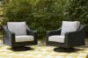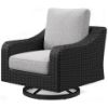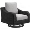 Sporting an easy-on-the-eyes elegance, this swivel lounge chair elevates the art of alfresco living. Beautiful and durable enough for indoor and outdoor use, this high-style/low-maintenance chair entices with plush, removable cushions wrapped in Nuvella® fabric that’s a breeze to keep clean. All-weather resin wicker handwoven over rust-free aluminum frame with durable powder coated finish. Solution-dyed high-performance fabric. Nuvella is an outdoor fabric that can be cleaned and offers UV resistance. Stainless steel hardware. 360-degree swivel. Designed to withstand the harsh elements of the outdoors. Clean fabric with mild soap and water, let air dry; for stubborn stains, use a solution of 4 oz. bleach to 28 oz. water. Assembly required. Estimated Assembly Time: 15 Minutes.