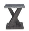 Live in luxurious harmony (without breaking the bank) when you stage this table set in your seating area. Dynamic weathered gray bases act as the foundation for faux gray marble tops. Très chic. Your contemporary living room has never been so stylishly coordinated. And for must-have function, the coffee table's built-in casters have you covered. Includes coffee table and 2 end tables Made with decorative paper laminate and MDF substrate Faux gray marble top Weathered gray wood grain finish on legs and lower shelf Coffee table with casters for easy mobility Assembly required Estimated Assembly Time: 45 Minutes