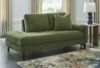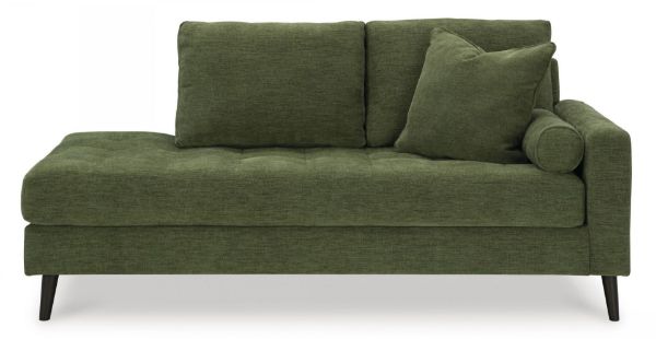 Feed your mid-century modern nostalgia—with a contemporary twist. A vibrant trend-right hue and comfy feel make this corner chaise perfect for lounging solo or with friends and family. Its linear profile adds plenty of fresh style, and the tapered accent legs are a nice revival. Corner-blocked frame Loose non-reversible button tufted seat cushion Loose back cushions High-quality foam cushions wrapped in poly fiber Accent and bolster pillow included Pillows with soft polyfill Polyester/viscose blend upholstery Tapered accent legs Platform foundation system resists sagging 3x better than spring system after 20,000 testing cycles by providing more even support Smooth platform foundation maintains tight, wrinkle-free look without dips or sags that can occur over time with sinuous spring foundations