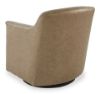 Tumbleweed leather/faux leather upholsteryGenuine leather covers inside areas such as the back, seat and arm cushions; skillfully matched faux leather covers the remaining areasDue to its natural origin, real leather can show individual characteristics such as healed scars, growth marks, grain variation and shade variationNatural variations make each hide unique and do not detract from the wearing qualities of leatherLoose seat cushionShelter height arms360-degree swivel