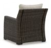 Relax. Refresh. Refine your outdoor oasis. This lounge chair masters high style with beautiful simplicity. High-performance fabric, warmly neutral hues and all-weather durability invite everyday use. From getting sun-kissed in the summer to chilling with cocoa in the winter, its cushioned comfort makes outdoor living all the more enticing. All-weather resin wicker handwoven over rust-free aluminum frame with durable powder coated finish. Solution-dyed high-performance fabric. Nuvella+™ is an outdoor fabric that can be cleaned and offers enhanced UV resistance. Clean fabric with mild soap and water, let air dry; for stubborn stains, use a solution of 4 oz. bleach to 28 oz. water. Stainless steel hardware. Designed to withstand the harsh elements of the outdoors. Assembly required. Estimated Assembly Time: 30 Minutes.
