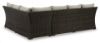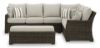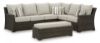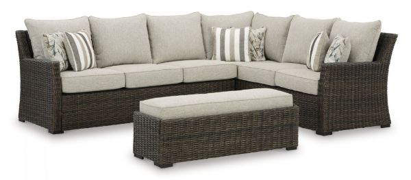 Relax. Refresh. Refine your outdoor oasis. This sectional and bench master high style with beautiful simplicity. High-performance fabric, warmly neutral hues and all-weather durability invite everyday use. From getting sun-kissed in the summer to chilling with cocoa in the winter, their cushioned comfort makes outdoor living all the more enticing. Includes sofa sectional and bench. All-weather resin wicker handwoven over rust-free aluminum frame with durable powder coated finish. Solution-dyed high-performance fabric. Nuvella+™ is an outdoor fabric that can be cleaned and offers enhanced UV resistance. Clean fabric with mild soap and water, let air dry; for stubborn stains, use a solution of 4 oz. bleach to 28 oz. water. Stainless steel hardware. Designed to withstand the harsh elements of the outdoors. Throw pillows included. Assembly required. Estimated Assembly Time: 45 Minutes.