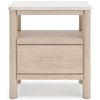 Transform your bedroom with this nightstand. With its clean lines and replicated marble top, it exudes a minimal and sophisticated boho style. Built-in lighting and charging capabilities add simplicity and ease to your everyday tasks. Tailor your space and create the perfect environment for sweet dreams. Made with engineered wood (MDF/particleboard/plywood) for the right balance of affordability and durability Smooth, light finish with replicated oak grain Replicated marble top Handle with champagne colored finish Storage cubby Smooth-gliding drawer Drawer interior is lined with a faux linen laminate for a clean, finished look Round post legs Built-in ambient lighting under top USB-C and wireless charging options Power cord included; UL Listed Minor assembly required Estimated Assembly Time: 5 Minutes
