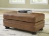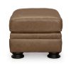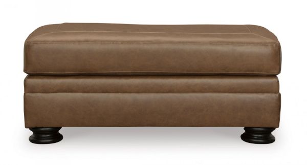 Merging traditional motifs with a modern hue, this ottoman ties your transitional seating area together. Turn legs support the comfortable cushion for a bit of extra flair. It’s approachable, yet luxurious. With this well-dressed footrest, everyday relaxation gets a distinctive upgrade. Corner-blocked frame Firmly cushioned High-quality foam cushion wrapped in poly fiber 100% top grain leather covers the cushion top; skillfully matched faux leather covers the remaining areas Top-grain leather simulating a wax oil pullup with crackle effect Lightly buffed and embossed with clear protective finish to prevent scratches Due to its natural origin, real leather can show individual characteristics such as healed scars, growth marks, grain variation and shade variation Natural variations make each hide unique and do not detract from the wearing qualities of leather Decorative turn leg