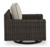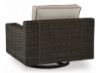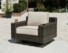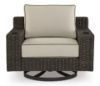 Who says the great outdoors isn’t made for luxury living? This swivel lounge chair offers all the high-end design, plush cushioned comfort and durability you could ask for, and then some. Its all-weather, rust-proof aluminum frame provides the easy-breezy wicker look you love without the high maintenance. Lounge about and swivel all around to take in the view. Built-in cup holder makes it that much easier to chillax. Rest assured, the high-performing Nuvella® fabric is made to stand up to the elements. All-weather resin wicker handwoven over rust-free aluminum frame. Nuvella® (solution-dyed polyester) high-performance fabric. Stainless steel hardware. Arm with built-in cup holder. Designed to withstand the harsh elements of the outdoors. 360-degree swivel. Clean fabric with mild soap and water, let air dry; for stubborn stains, use a solution of 4 oz. bleach to 28 oz. water. Assembly required. Estimated Assembly Time: 30 Minutes.