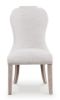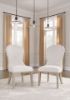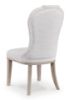 This striking dining side chair looks equally at home in traditional or modern settings. A rich layered gray finish enhances the wood grain colors for a modern look. Light textured fabric covers the elegantly shaped chair back. It's a delicious traditional touch in a dining room or anywhere you want to show off your good taste.