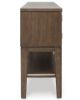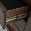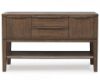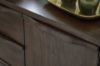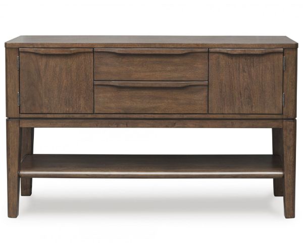 This dining sever exemplifies casual contemporary design with an urban vibe. Warm and inviting with a rich brown finish, it makes storing dining essentials that much sleeker thanks to its two smooth-gliding drawers and spacious cabinets. Seamlessly incorporated wood handles subtly nod to mid-century modern design. What a stunning reflection of your simple-meets-elegant sensibility. Made with hardwood solids, mango wood veneer and MDF substrates Warm brown finish Shapely wooden handles 2 drawers with fully finished interior, dovetail construction and ball-bearing side glides 2 spacious cabinets Open lower shelf Assembly required Estimated Assembly Time: 15 Minutes