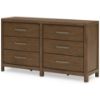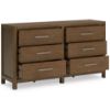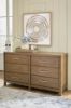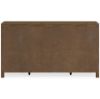 This dresser sits comfortably at the intersection of modern lodge and farmhouse aesthetics. Your warm and welcoming disposition is reflected in the charming architectural elements and light brown glazed finish. Even with its poise, the dresser remains practical. Smooth-gliding drawers tuck away necessities, defining your bedroom with reliable function and style.