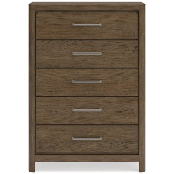 This chest sits comfortably at the intersection of modern lodge and farmhouse aesthetics. Your warm and welcoming disposition is reflected in the charming architectural elements and light brown glazed finish. Even with its poise, the chest remains practical. Smooth-gliding drawers tuck away necessities, defining your bedroom with reliable function and style.