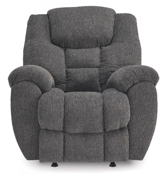 Sometimes seeing is believing. And you can rest assured that this rocker recliner is every bit as indulgent as it looks. Designed to put you in the lap of luxury, the generously scaled seating—wrapped in plush and practical Next-Gen Nuvella™ upholstery—sports pillow-wrapped armrests and curvaceously cushioned head-neck support for feel-good flair. Pull tab reclining motion Corner-blocked frame with metal reinforced seat Attached back and seat cushions High-quality foam cushions wrapped in poly fiber Polyester upholstery Next-Gen Nuvella is a family-friendly fabric that is soft, easy to clean, stain-resistant and durable Clean fabric with mild soap and water, let air dry; for stubborn stains, use a solution of 4 oz. bleach to 28 oz. water Gentle rocking motion