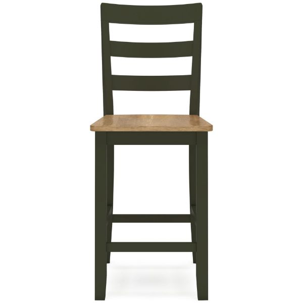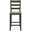 Complement your home’s simply relaxed sensibility with this counter height bar stool. A charming green hue offers a chic contrast to the natural wood tone, for a casual look that vibes with a variety of aesthetics. Its hard, contoured seat design prioritizes both cleanability and comfort. Whether you're sipping your morning coffee, settling in for dinner or working from home, this stool is smartly designed for everyday comfort and style. Made with solid wood frame Light natural mango wood finish with a casual green Contoured mango wood veneer seat Includes adjustable levelers Assembly required Estimated Assembly Time: 15 Minutes