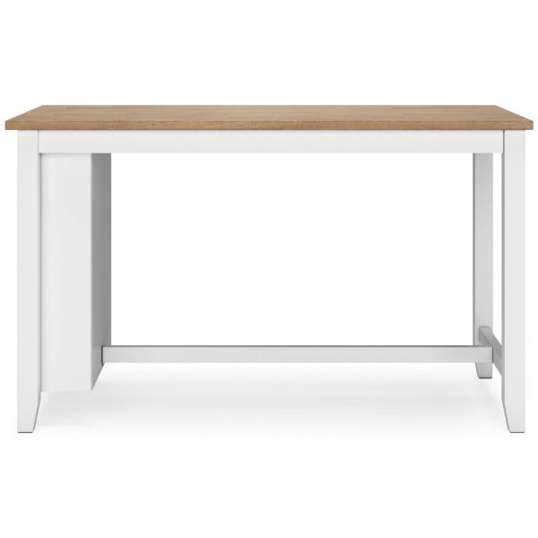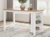 Complement your home’s simply relaxed sensibility with this counter height dining table. A crisp white hue offers a chic contrast to the natural wood tone, for a neutral look that vibes with a variety of aesthetics. Built-in storage shelves keep kitchen and work accessories easily accessible. Whether you're sipping your morning coffee, settling in for dinner or working from home, this chair is smartly designed for everyday comfort and style. Made with rubberwood solids, mango wood veneer and MDF substrate Butcher block veneer top Light natural mango wood finish with a clean white 3 storage shelves Seats up to 4 Assembly required Estimated Assembly Time: 30 Minutes