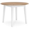Complement your home’s simply relaxed sensibility with this drop-leaf dining table. A crisp white hue offers a chic contrast to the natural wood tone, for a neutral look that vibes with a variety of aesthetics. When guests drop by, convert it from a space-saving two-seater to a larger table with the two drop leaves. Whether you're sipping your morning coffee, settling in for dinner or working from home, this table is smartly designed for everyday comfort and style. Made with rubberwood solids, mango wood veneer and MDF substrate Butcher block veneer top Light natural mango wood finish with a clean white 2 drop leaves Seats up to 4 Assembly required Estimated Assembly Time: 15 Minutes