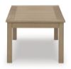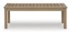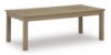 This coffee table is a beautiful addition to any outdoor living space. Effortless in its simplicity, this piece echoes your easygoing sensibilities. Combining durable, cutting-edge engineered materials, its Weatherwood construction in a blond wood color enhances the contemporary design. Pair this table with the matching sofa and chairs for a spectacular backyard or patio seating arrangement. Weatherwood, an engineered resin polymer, is designed to offer a long-lasting alternative to wood. Heavyweight material is colored throughout, UV resistant and ideal for high-wind areas. Can be cleaned with mild soap and water. Stainless steel hardware. Aluminum table supports. Slatted tabletop. Assembly required. Estimated Assembly Time: 15 Minutes.