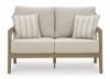 This loveseat is a beautiful addition to any outdoor living space. Effortless in its simplicity, this piece echoes your easygoing sensibilities. Combining durable, cutting-edge engineered materials, its Weatherwood construction enhances the contemporary design. Rest assured, the thick cushions and accent pillows are wrapped in high-performance fabric that’s fade-resistant, stain-resistant and a breeze to clean. Pair with the matching sofa and swivel lounge chair for a spectacular seating arrangement. Weatherwood, an engineered resin polymer, is designed to offer a long-lasting alternative to wood. Heavyweight material is colored throughout, UV resistant and ideal for high-wind areas. Can be cleaned with mild soap and water. Stainless steel hardware. Solution-dyed high-performance fabric. Nuvella+™ is an outdoor fabric that can be cleaned and offers enhanced UV resistance. Clean fabric with mild soap and water, let air dry; for stubborn stains, use a solution of 4 oz. bleach to 28 oz. water. All-weather foam cushion core wrapped in soft polyester. Accent pillows included. Imported fabric and fill. Minor assembly required. Estimated Assembly Time: 15 Minutes.