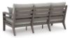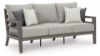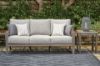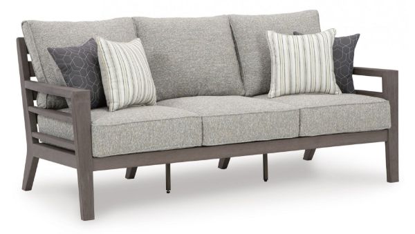 This sofa is a stylish outdoor piece with staying power. Built for longevity with Weatherwood, an engineered resin polymer with the appearance of wood, it indulges you in contemporary design without sacrificing durability. Stunning form and can’t-miss function—with this sofa, endless days in the shade await. Weatherwood, an engineered resin polymer, is designed to offer a long-lasting alternative to wood. Heavyweight material is colored throughout, UV resistant and ideal for high-wind areas. Can be cleaned with mild soap and water. Solution-dyed high-performance fabric Nuvella+™ is an outdoor fabric that can be cleaned and offers enhanced UV resistance. Clean fabric with mild soap and water, let air dry; for stubborn stains, use a solution of 4 oz. bleach to 28 oz. water. 4 throw pillows included. Stainless steel hardware. Designed to withstand the harsh elements of the outdoors. Two middle leg supports require assembly. Estimated Assembly Time: 15 Minutes.