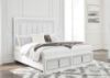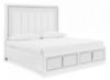 Transform your bedroom with this upholstered storage bed. Its LED lighting, rhinestone framing and faux leather panels exude modern glamour. And the convenient storage footboard offers a practical solution for organizing and accessing belongings. Let your sanctuary shine—and never let anyone dull your sparkle. Includes king upholstered headboard, storage footboard, rails and roll slats Made with solid wood components, MDF substrate and decorative laminate White lacquer finish Vertical metal drawer pulls Faux leather upholstery Built-in LED lighting with 3-way dimmer switch 2 drawers with fully finished interior, dovetail construction and ball-bearing side glides Drawers with rhinestone frames; textured laminate drawer fronts Power cord included; UL Listed Bed does not require additional foundation/box spring; accommodates most zero clearance adjustable bases with the addition of a bunkie board Mattress available, sold separately Assembly required Estimated Assembly Time: 40 Minutes