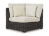 This outdoor corner chair is made with Nuvella+™ solution-dyed high-performance fabric. Pairs with other items in the series to make an outdoor sectional. Compatible with other P711 items, sold separately.